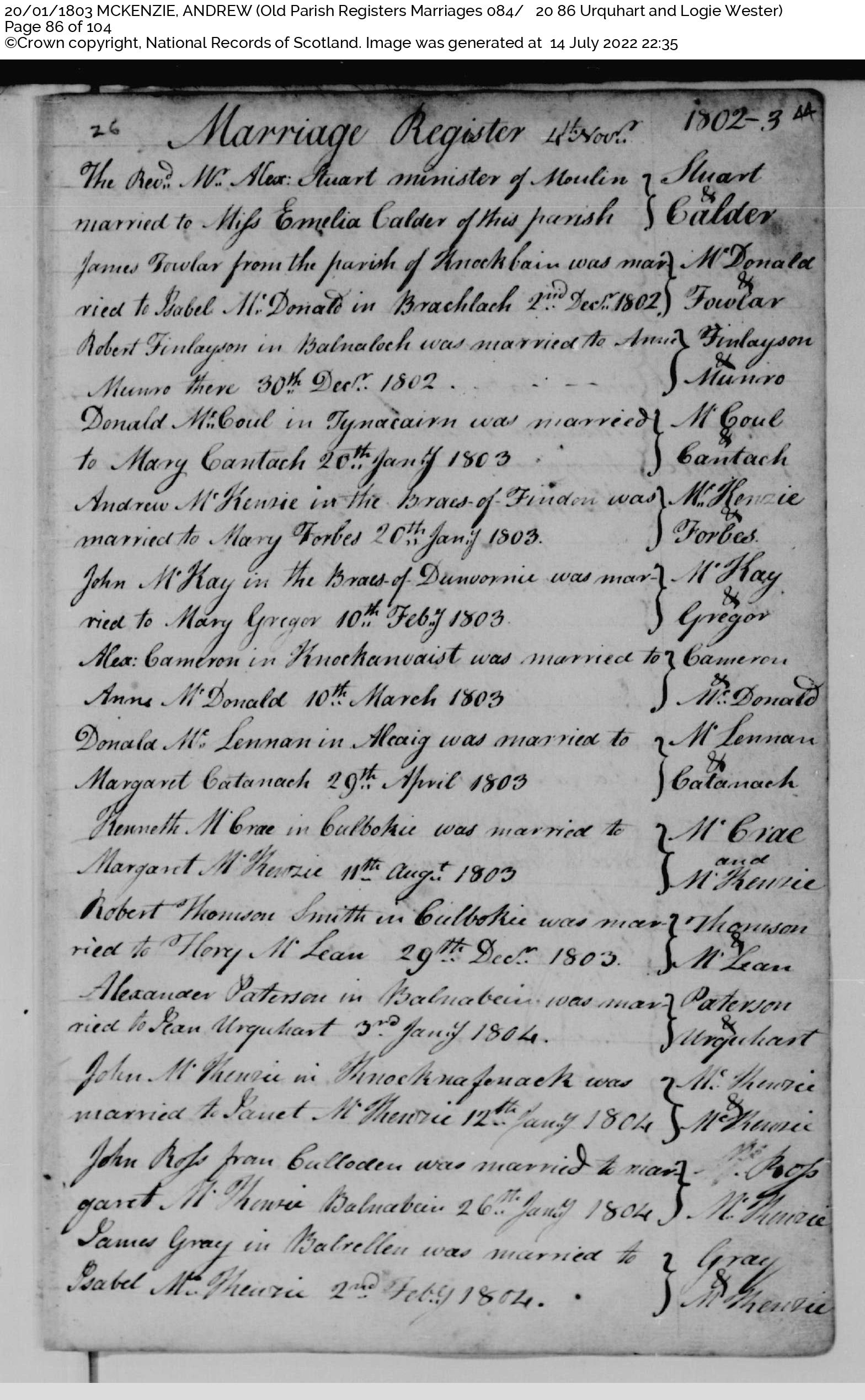ScotlandsPeople_OPR084_000_0020_0086Z - Andrew McKenzie and Mary Forbes marriage 1803