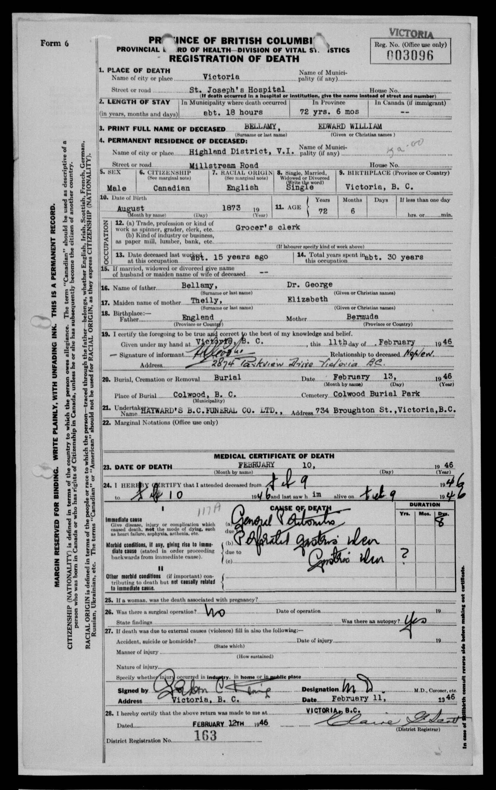 Family Tree (Bruce, Denison, Douglas, Harvey, Helmcken, Mackenzie, Maclean, Maclennan, McTavish, Stewart)