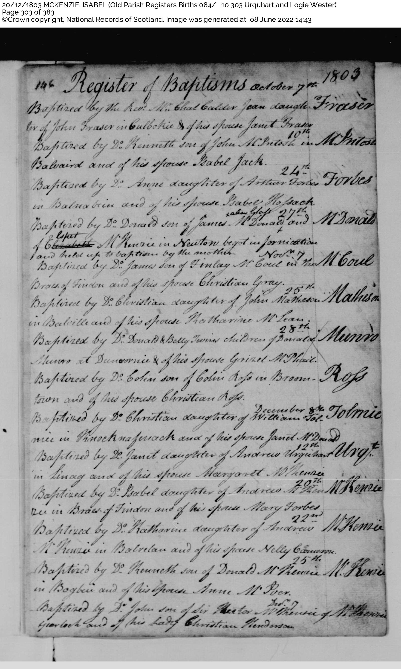 ScotlandsPeople_OPR084_000_0010_0303Z- Isabella Mackenzie birth record 1803